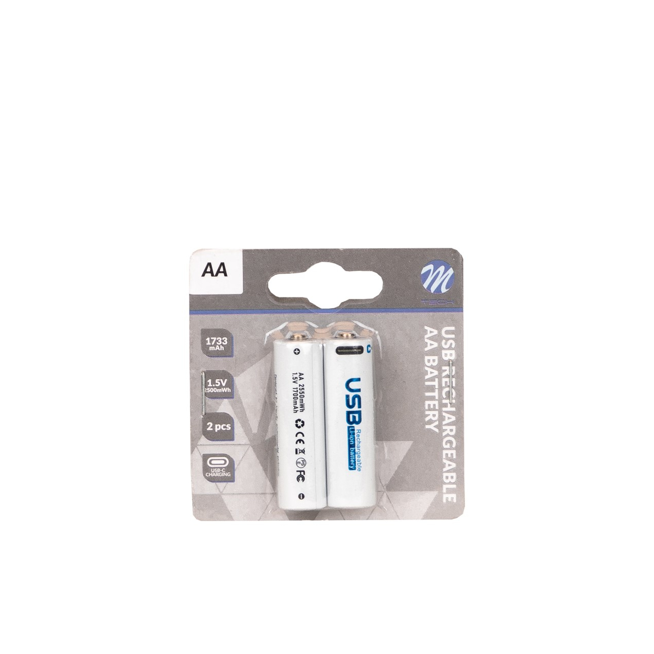 Blister 2 Pilhas AA Recarregáveis M-tech 1733mAh/2500mwh
