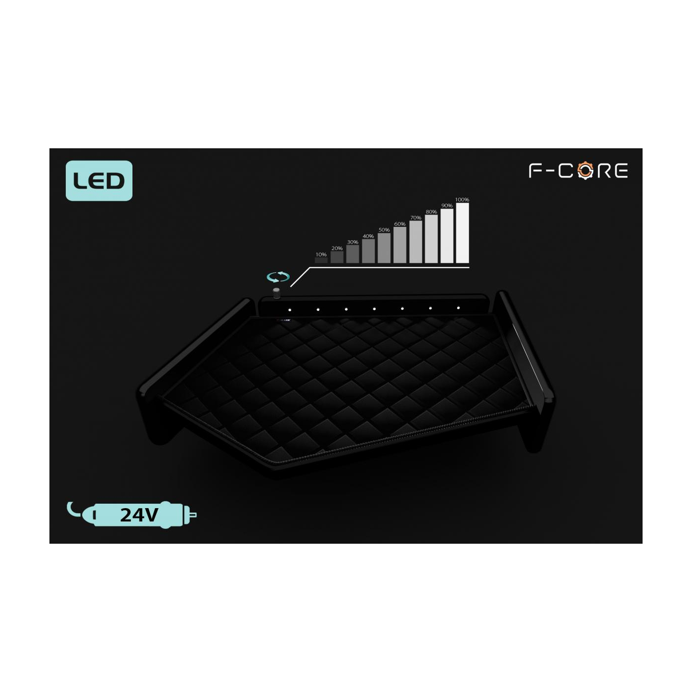 O painel frontal foi equipado com LEDs de iluminação branca e direcional. Esta solução torna a utilização da mesa mais fácil e mais confortável, mesmo durante a condução.